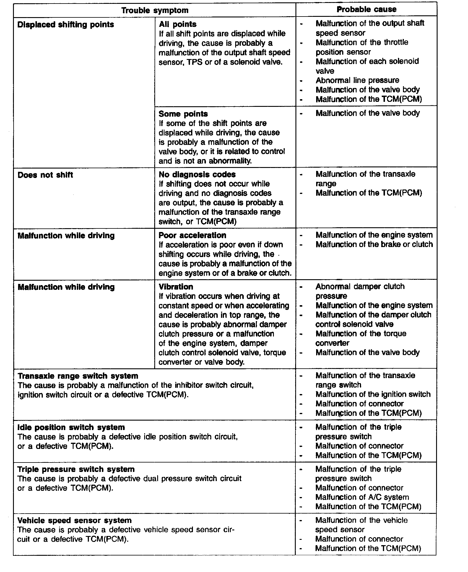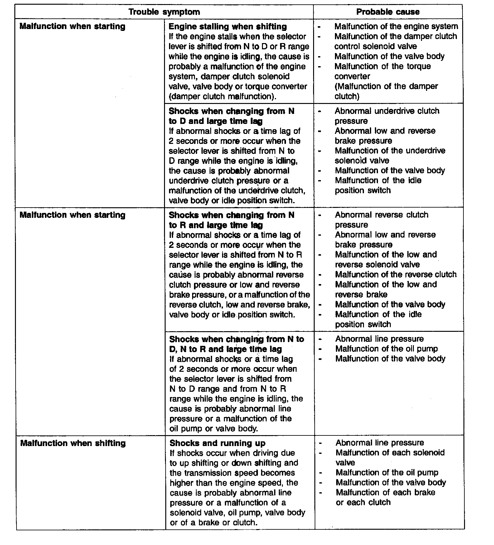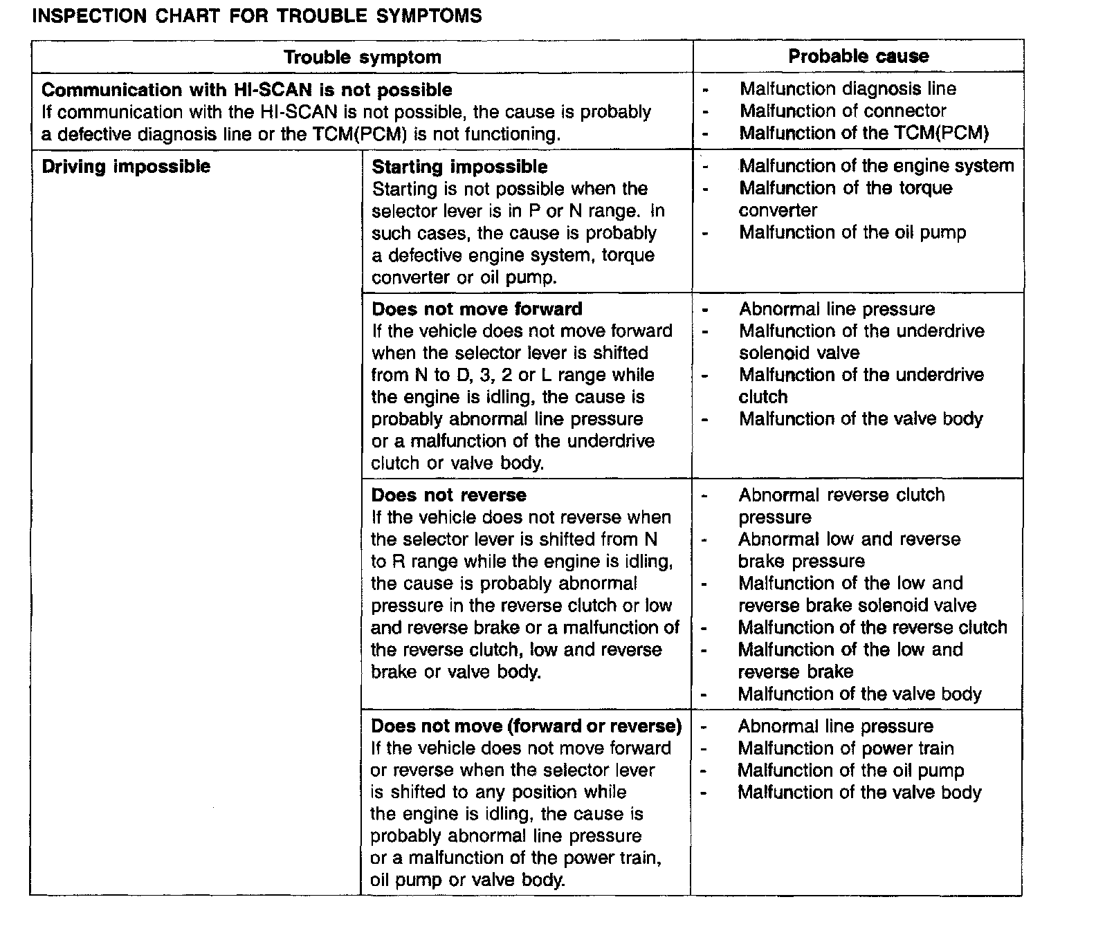 INSPECTION CHART FOR TROUBLE SYMPTOMS