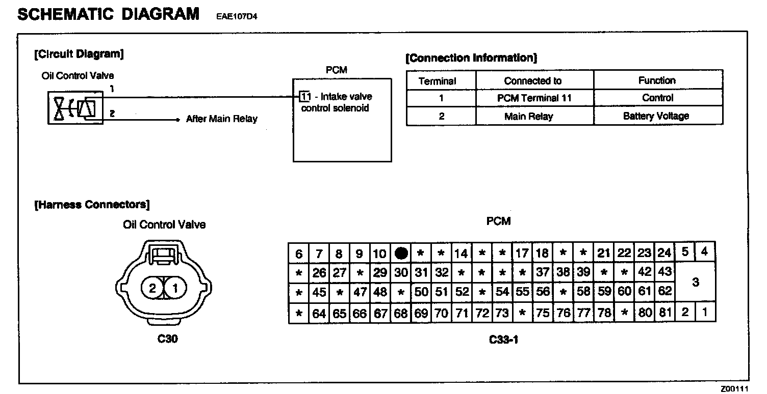 PCM sets DTC P0077 if the PCM detects that the oil control valve control circuit is open or short to battery.