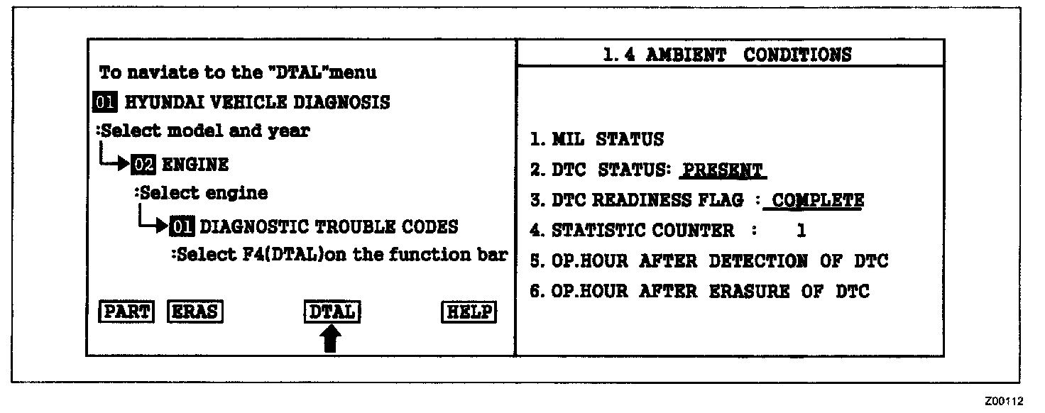 2. Press F4(DTAL) to select DTC information from the DTCs menu
