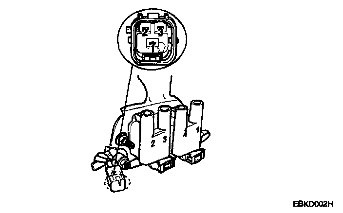 INSPECT IGNITION COIL1. Measure the primary coil resistance between terminals 1,2 and 1,3.