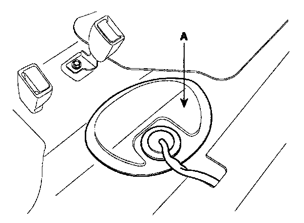 2. Open the service cover (A) under the rear seat cushion.