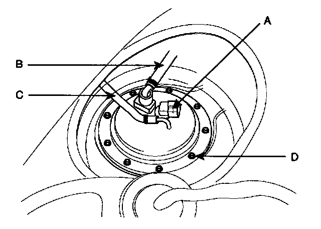 5. Unfasten the fuel pump assembly mounting bolts (D).