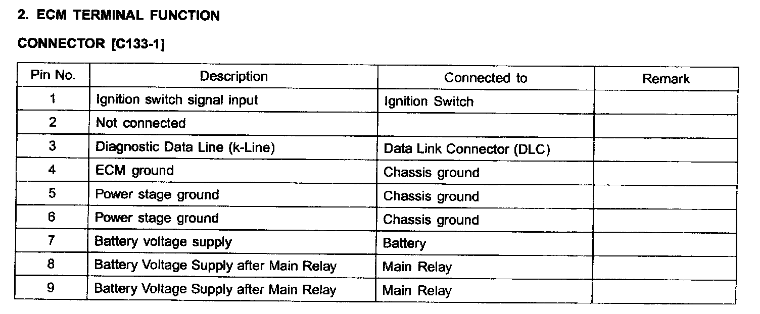 ECM Terminal Function Connector [C133-3] Part 1: