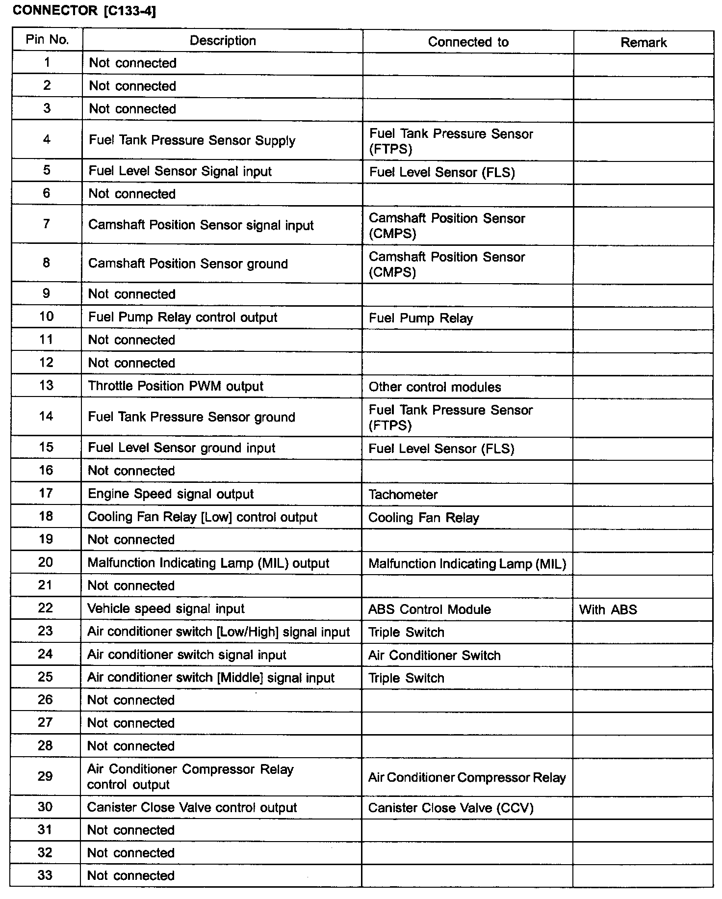 ECM Terminal Input/Output Signal Connector (C133 - 4)