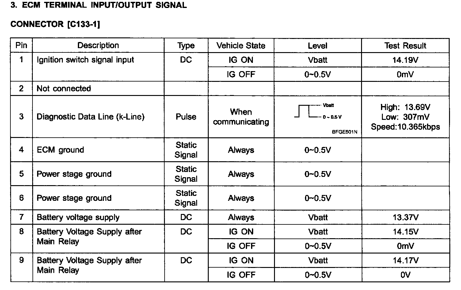 ECM Terminal Input/Output Signal Connector [C133-3] Part 1:
