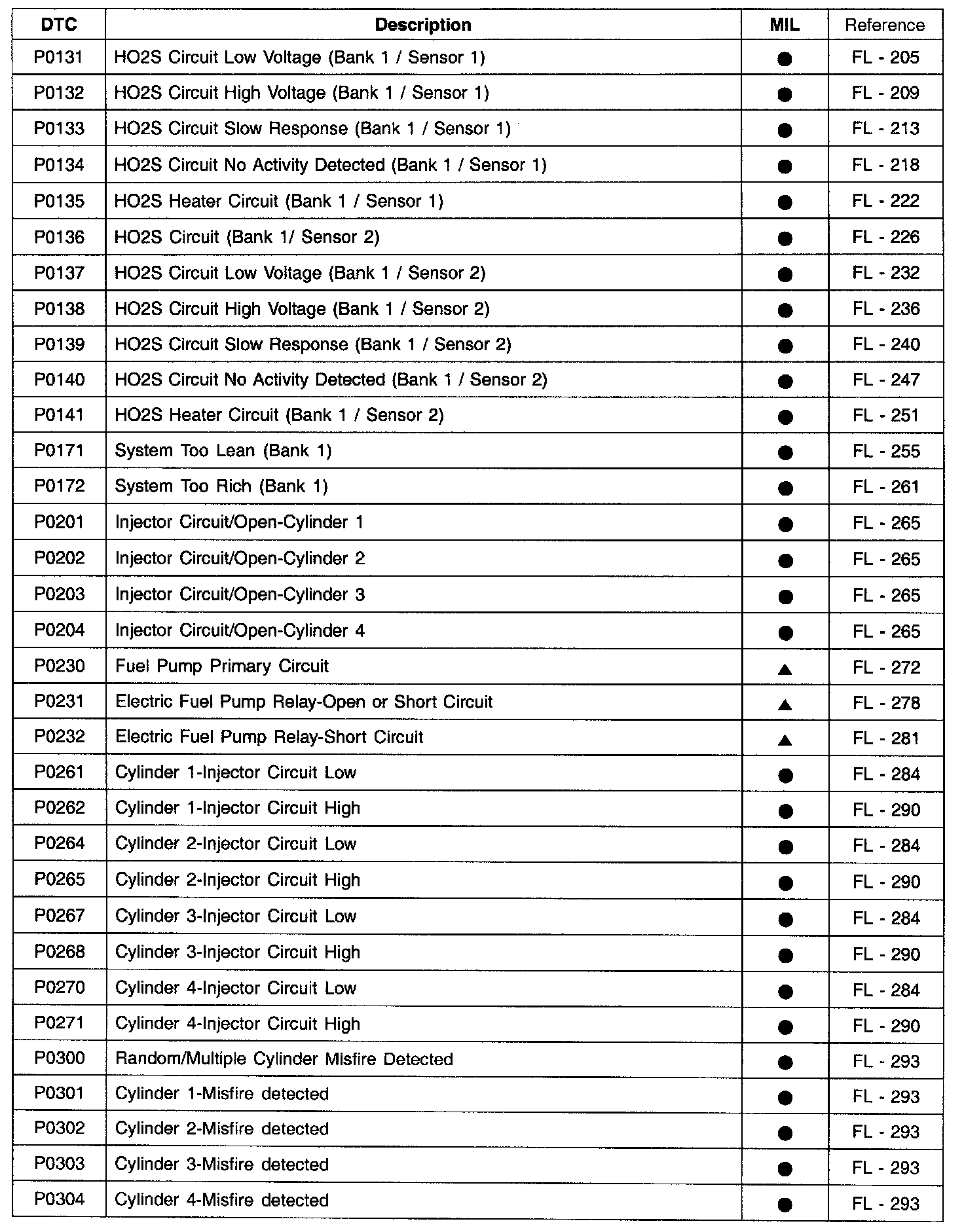 P0131 - P0304: