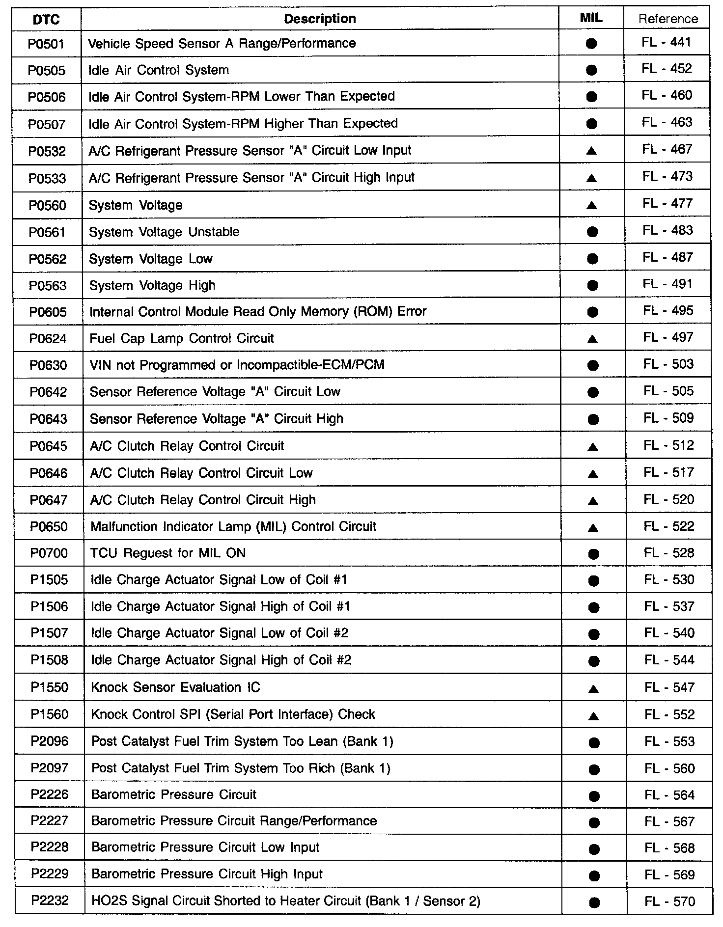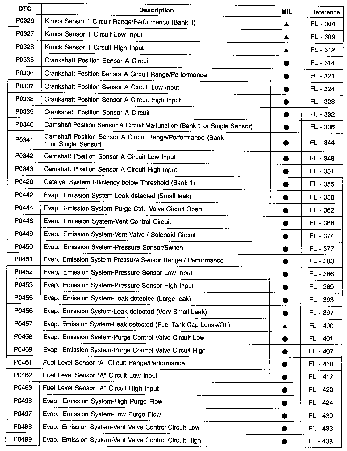 A L L Diagnostic Trouble Codes ( DTC )