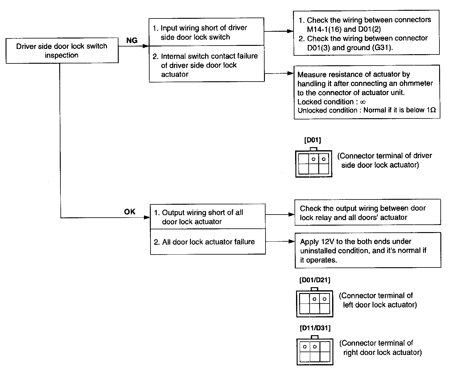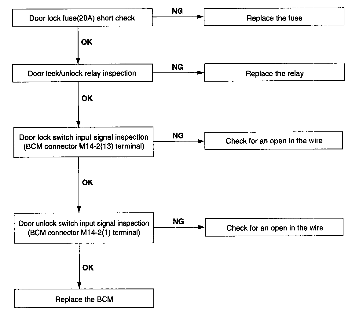 2. Unlock function works but lock function does not work. -> Since door lock relay is malfunctioning, replace the door lock relay.