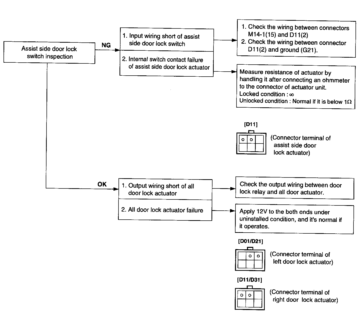 1. Lock function works but unlock function does not work. -> Since door unlock relay is malfunction, replace the door unlock relay.