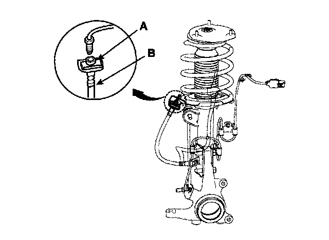 2. Remove the brake hose clip(A), and then remove the brake hose(B).