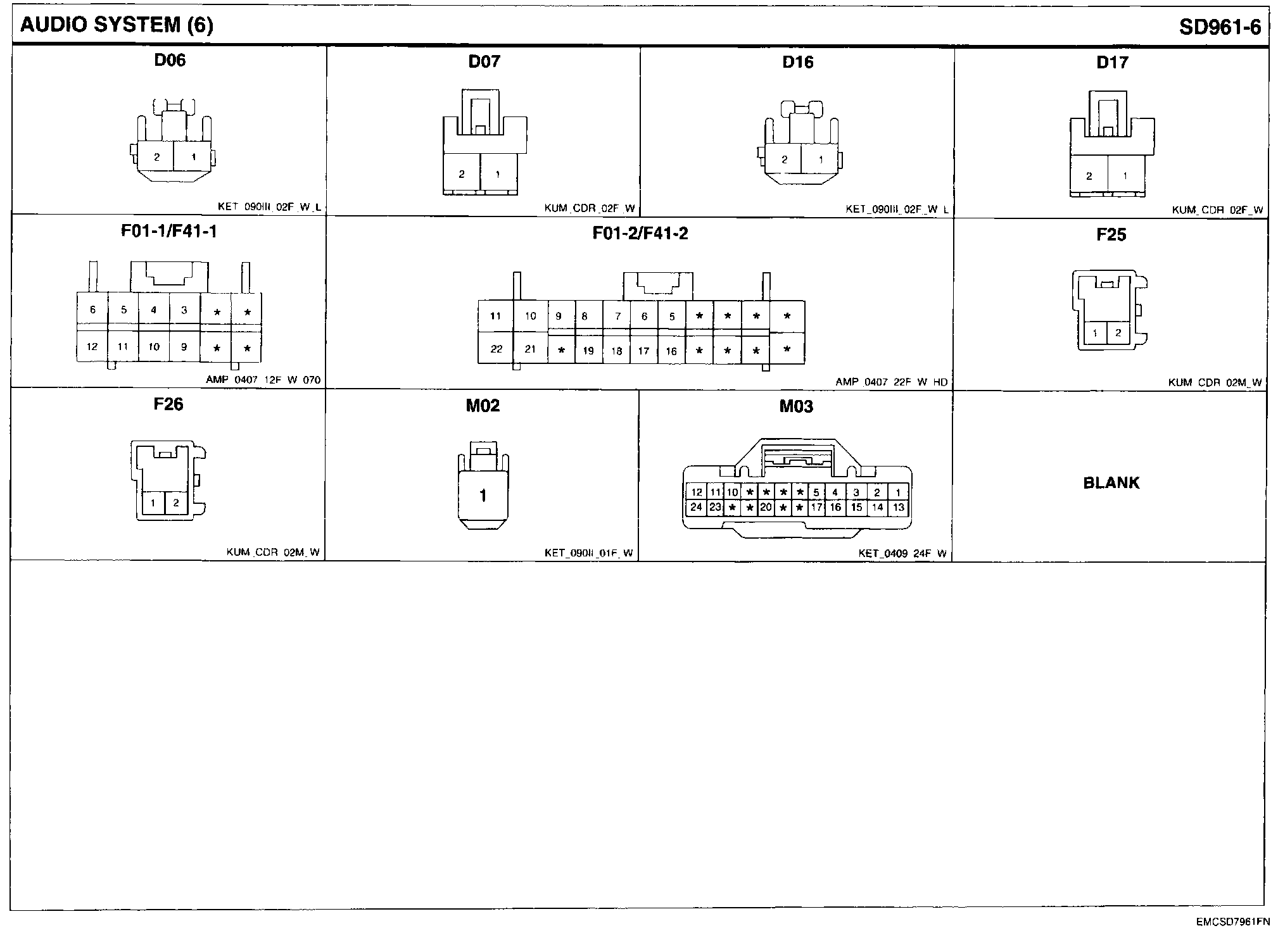 Audio System Connector Pin Outs: