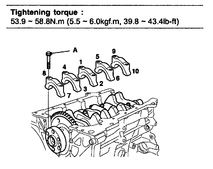 CrankshaftCrankshaft main bearing cap bolt 53.9-58.8 Nm (5.5 - 6.0 kgf-m, 39.8 - 43.4 ft. lbs.)