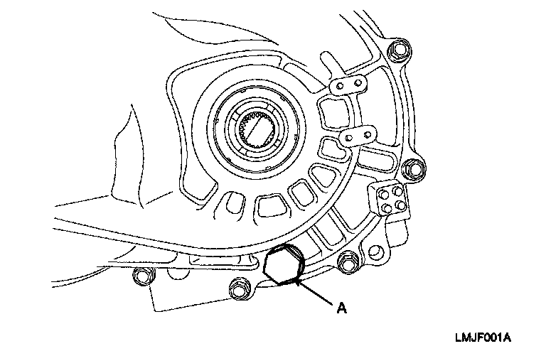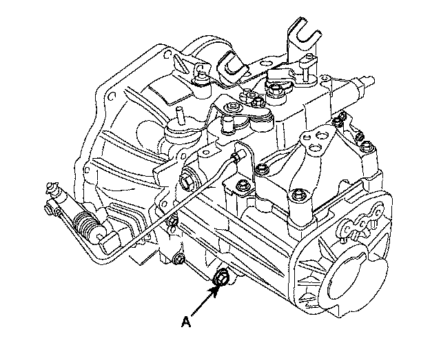 2. Drain the transaxle oil after loosening the drain plug(A).