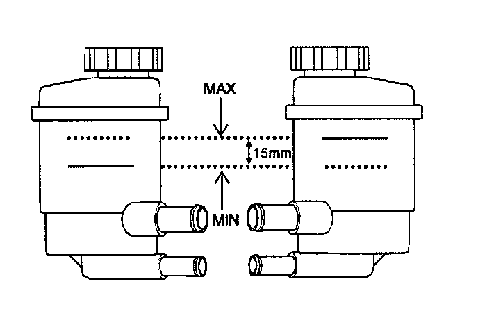 1. If the fluid level varies 15 mm (5.9 in) or more, bleed the system again.
