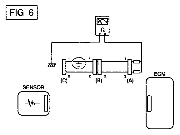 a. Disconnect connectors (A), (C) and measure for resistance between connector (A) and Chassis Ground as shown in [FIG. 6].