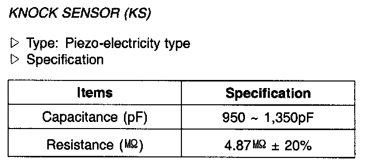 Knock Sensor (KS) - Specification: