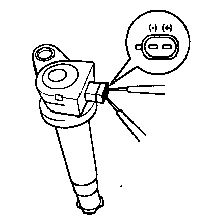 Measure the primary coil resistance between terminals (+) and (-).