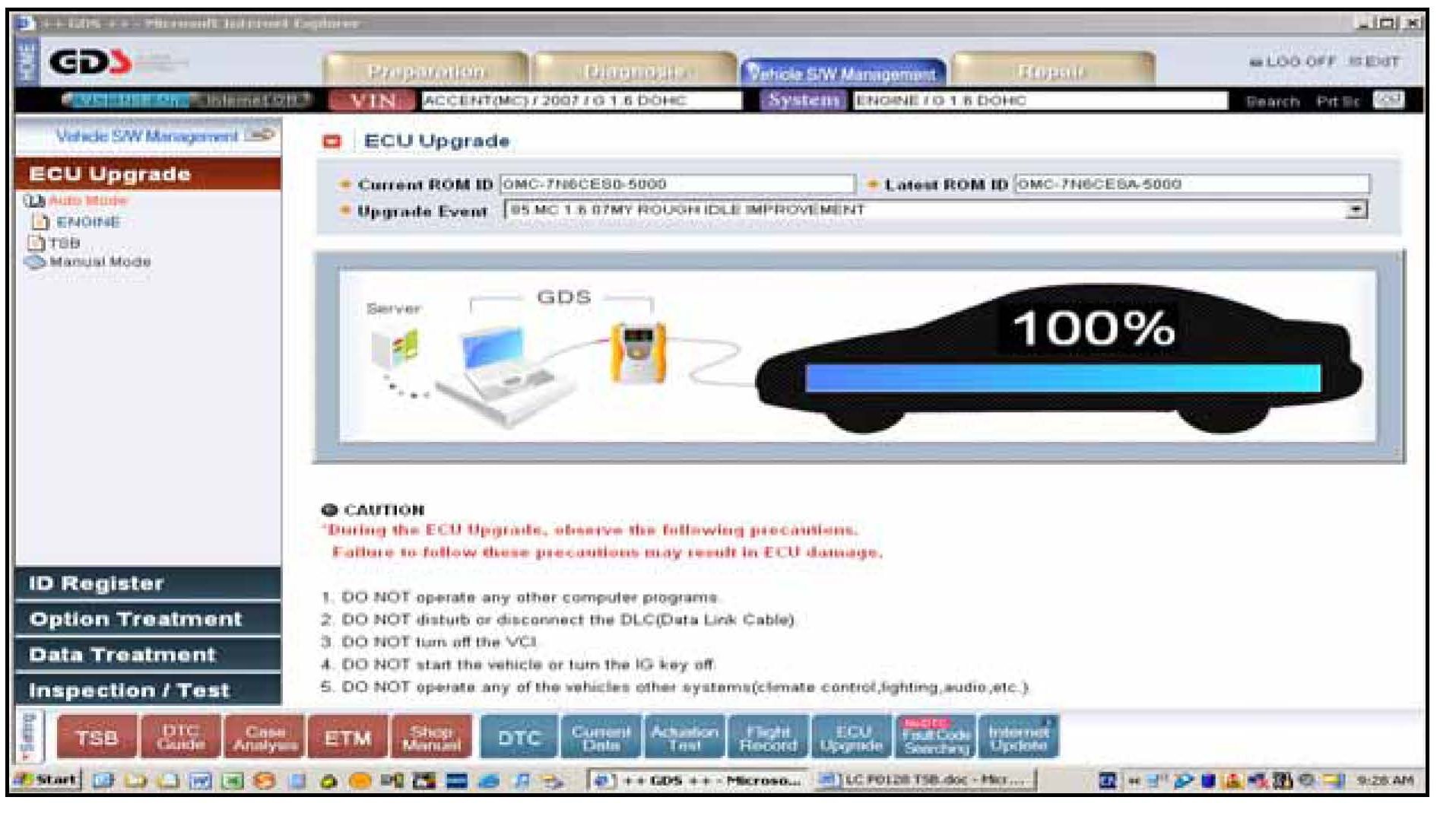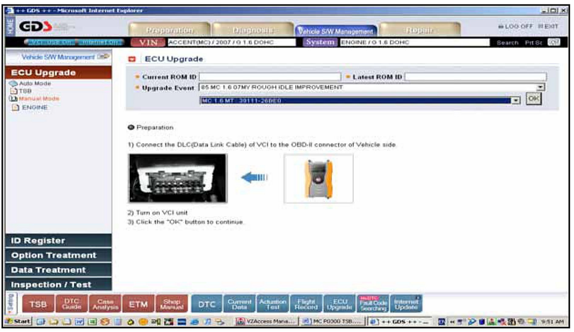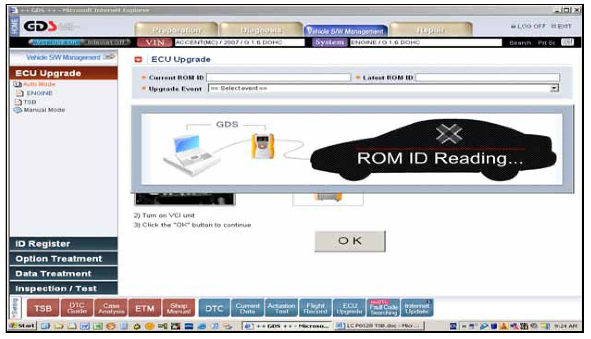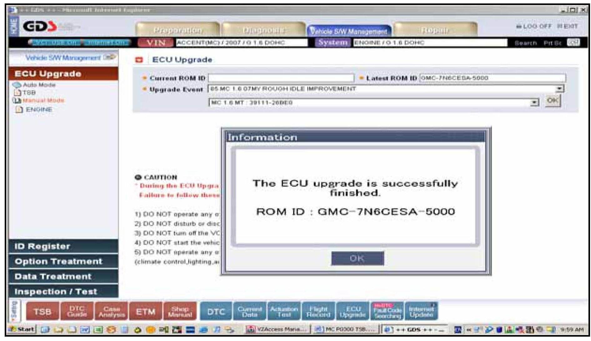 3. Turn on the VCI and GDS laptop, and then perform reprogramming in accordance with the instructions of the below procedure:
