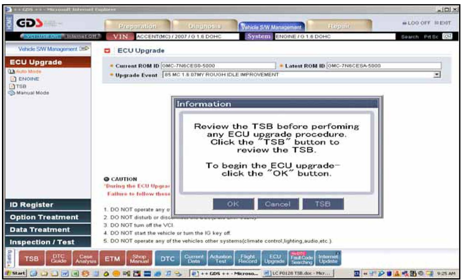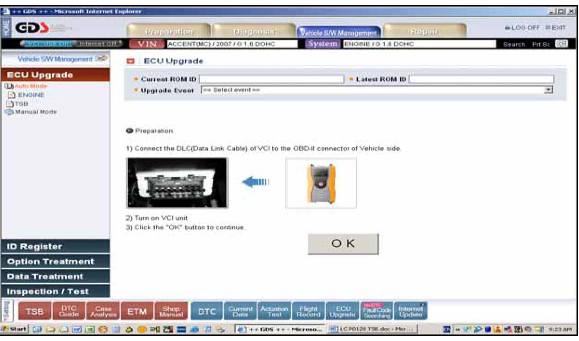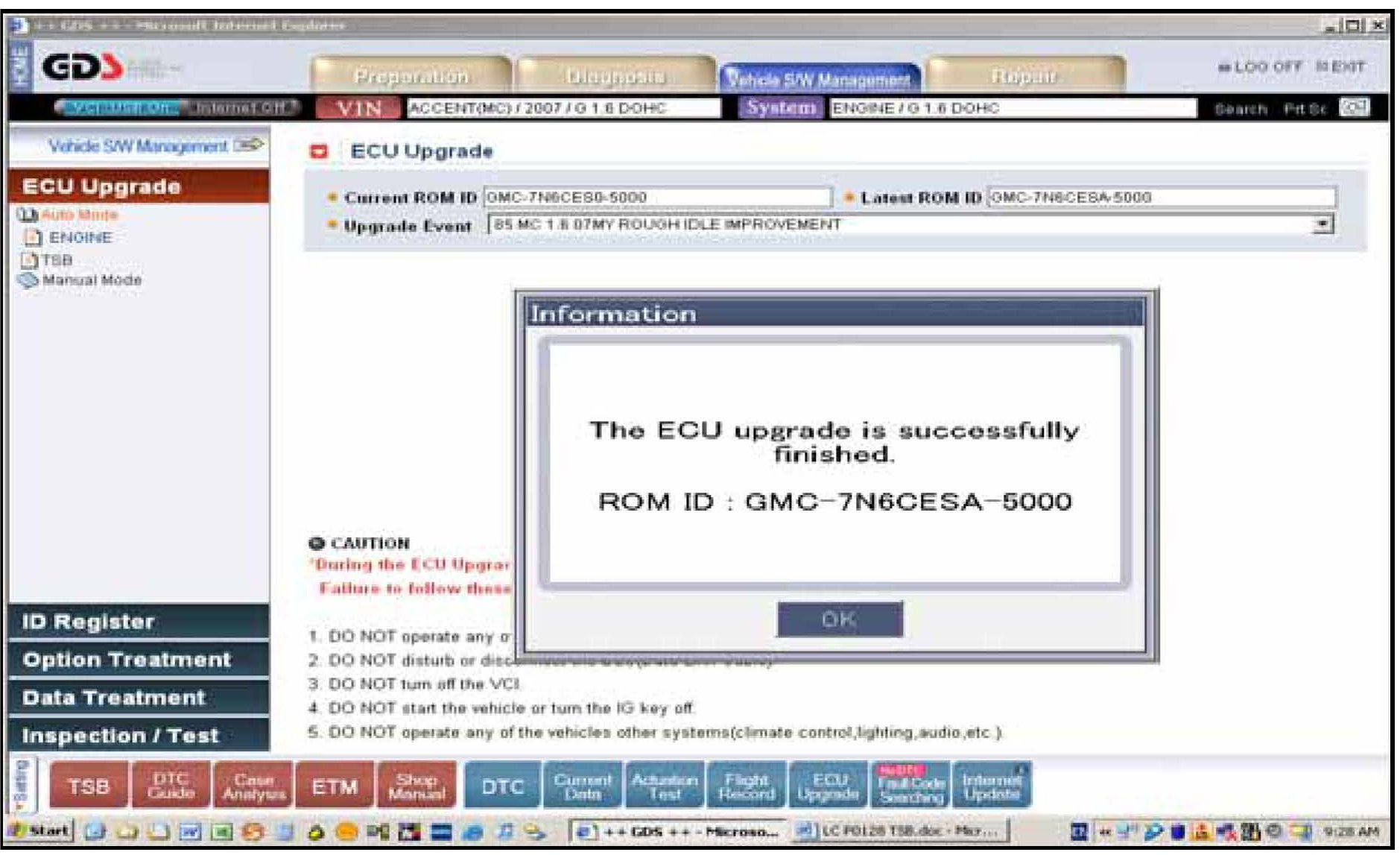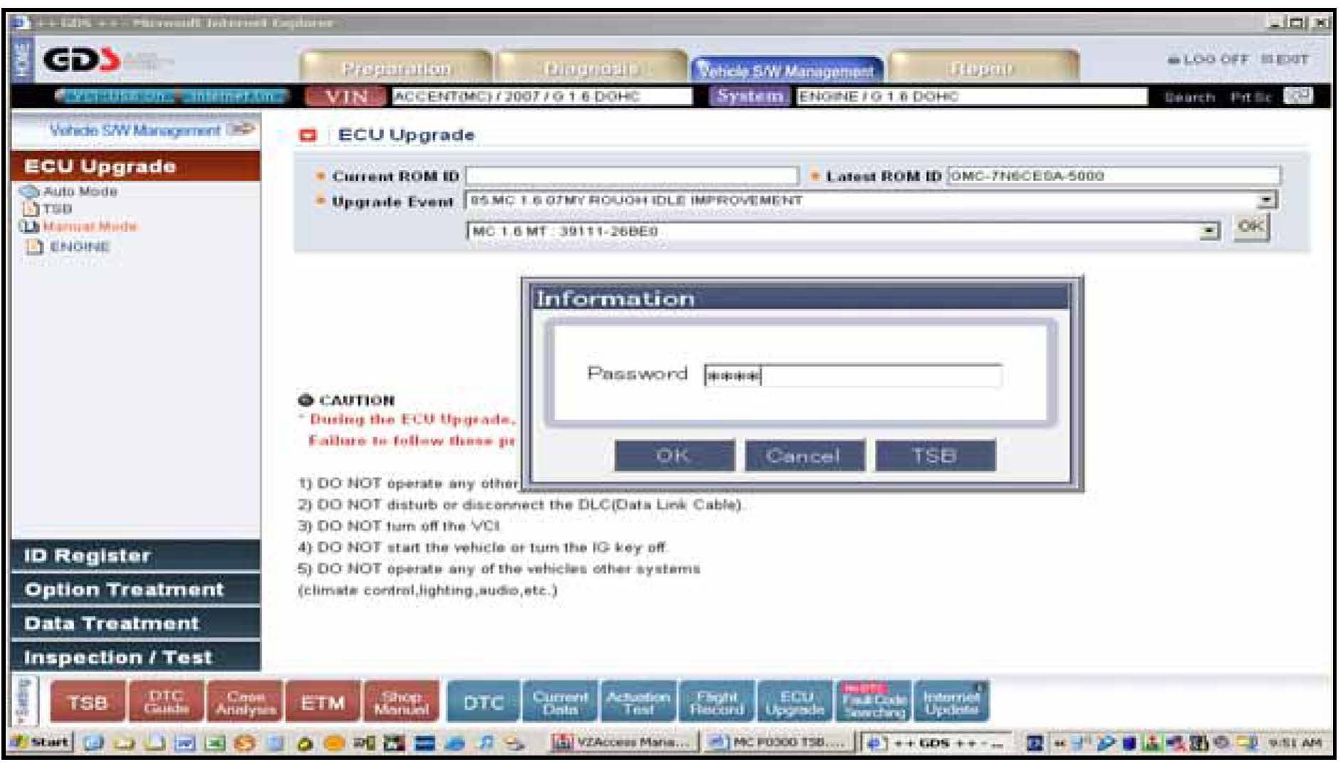 3. Turn on the VCI and GDS laptop, and then perform reprogramming in accordance with the instructions of the below procedure: