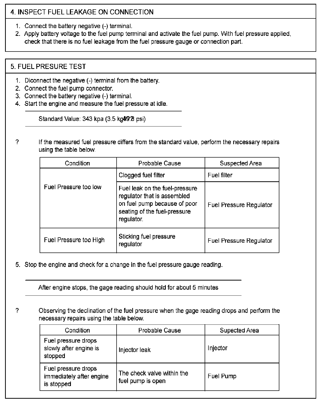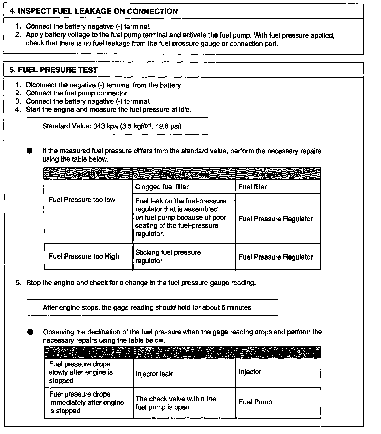 Fuel Pressure: Testing and Inspection