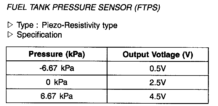 Fuel Tank Pressure Sensor (FTPS) - Specification: