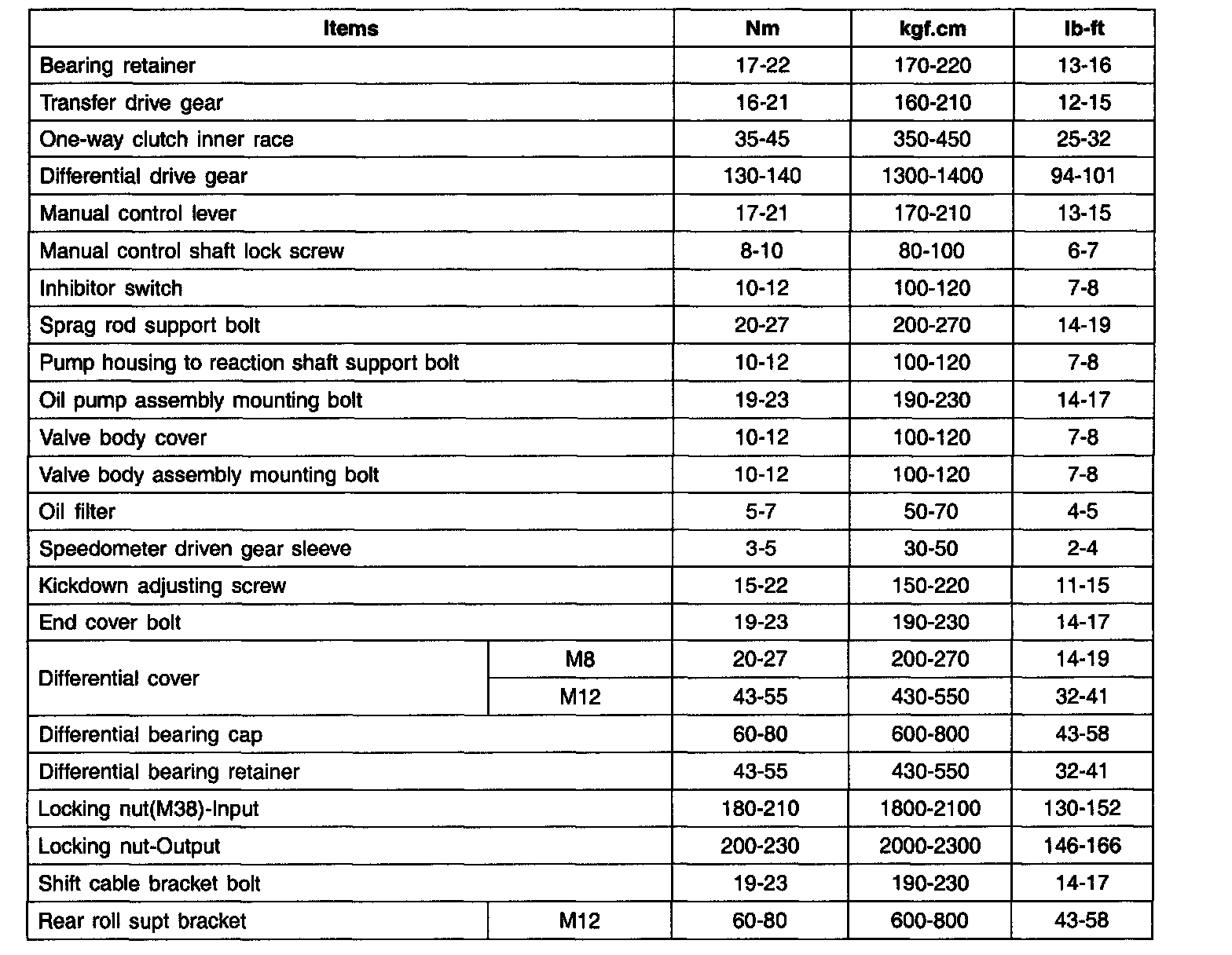 Tightening Torques