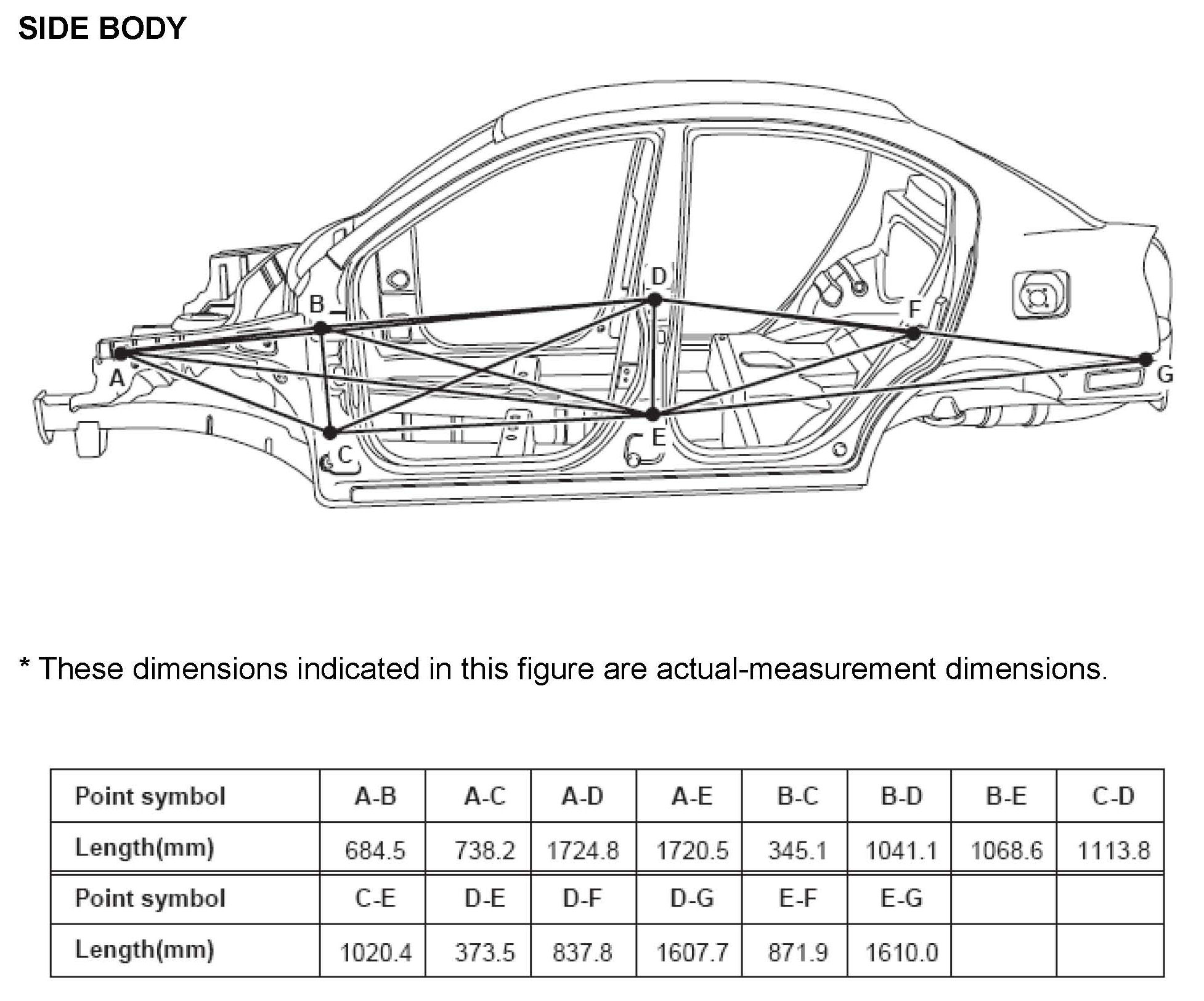 1. These dimensions indicate the actual linear distance between measurement points, and are the reference dimensions for use if a tracking gauge is used for measurement.