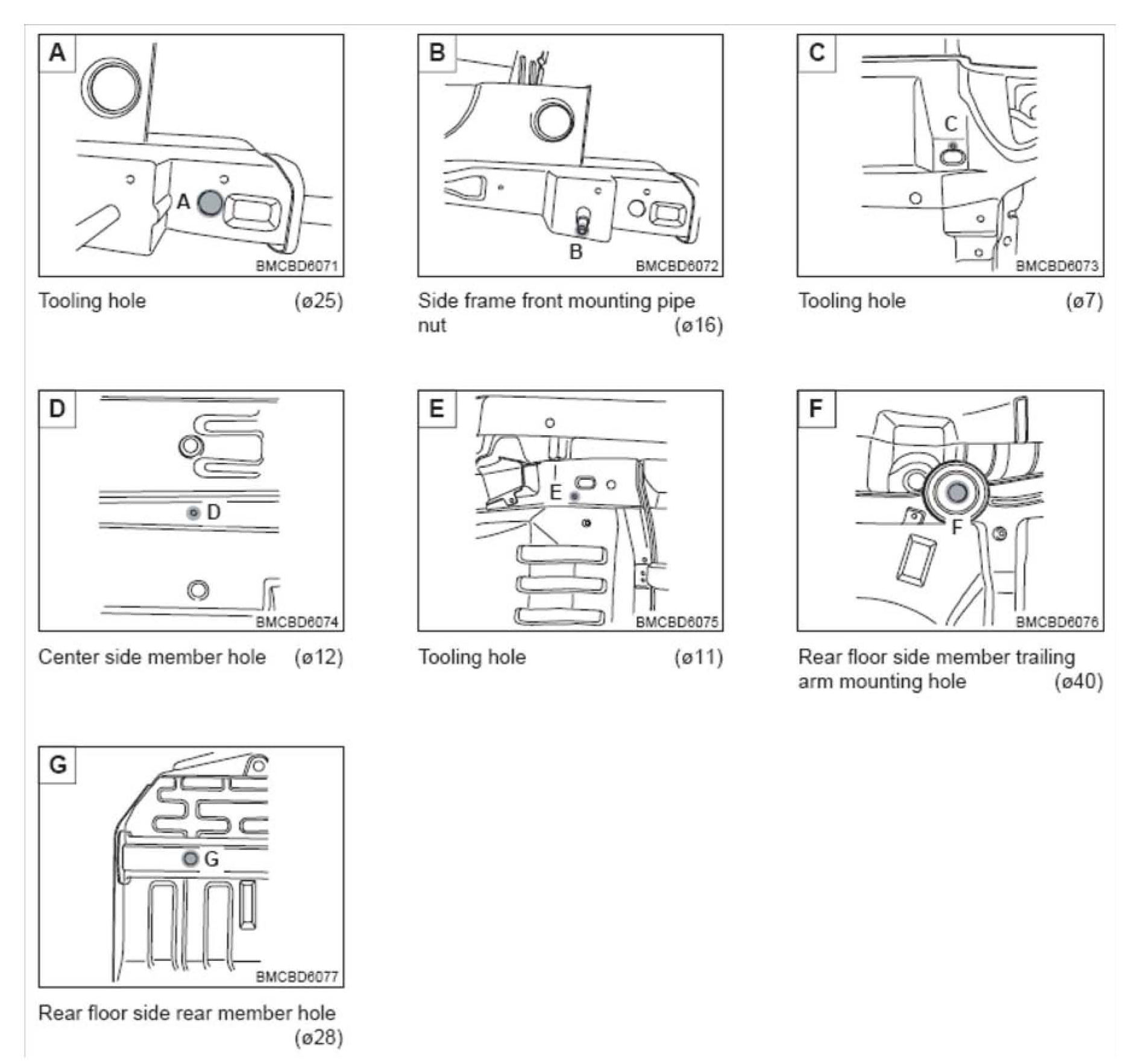 This TSB provides body dimension information for the 4 Door MC Accent. Similar information may be available from suppliers of frame straightening equipment.