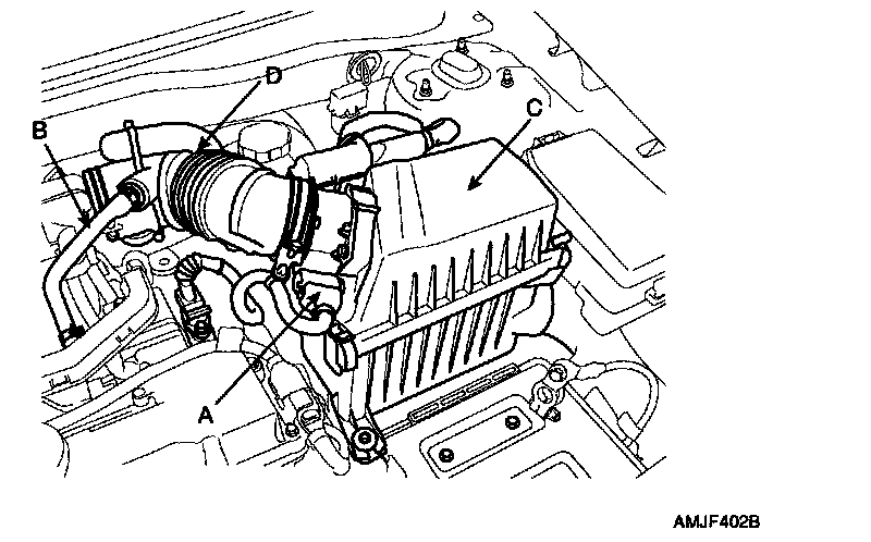 2) Disconnect the air cleaner hose(D) from the bleeder hose(B).