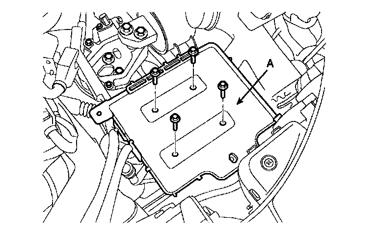 22. Remove the engine start motor mounting bolts (A).