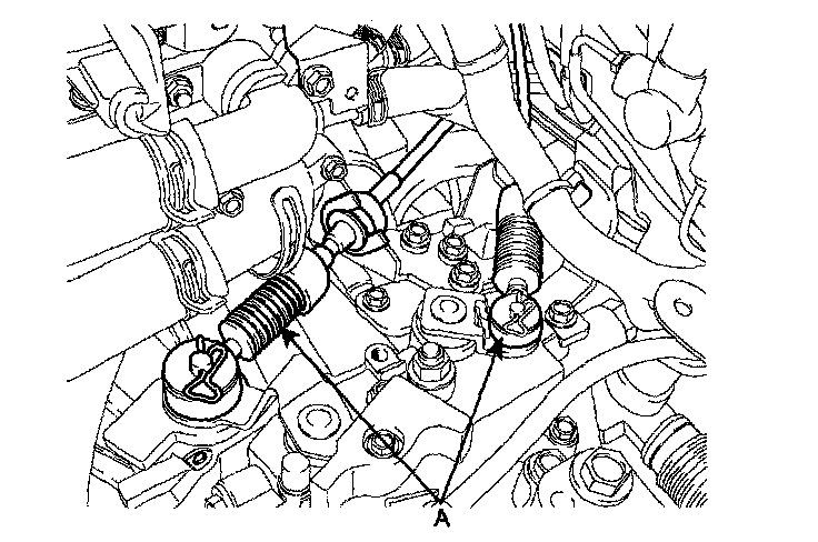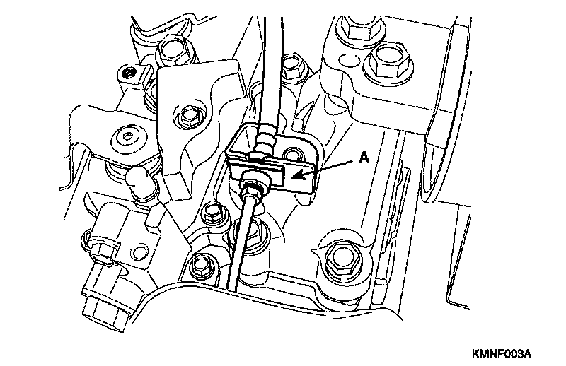 4) Remove the transaxle control cable (A).