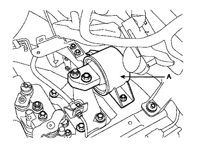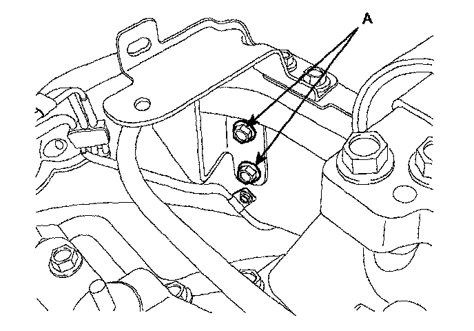 11. Remove the transaxle mounting support bracket (A).