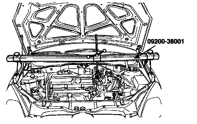 12. Using the SST(09200-38001), hold the engine and transaxle assembly safely.