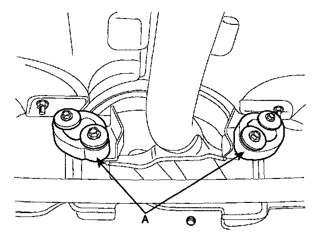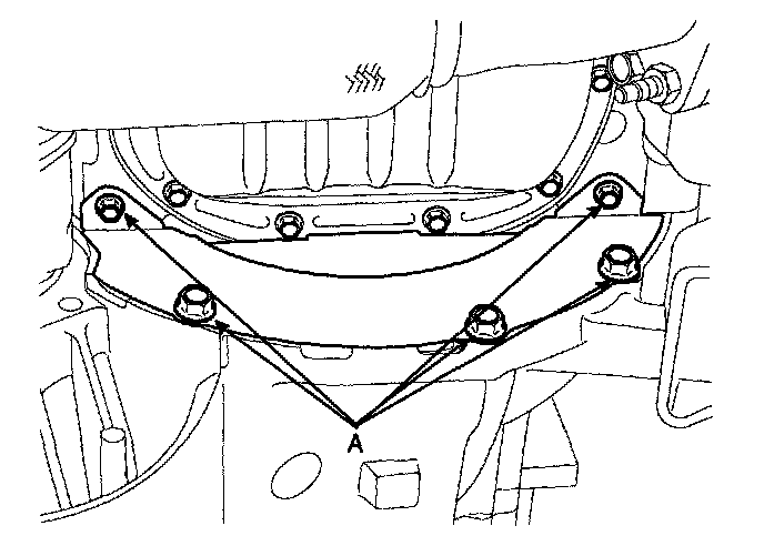 23. Remove the transaxle lower mounting bolts(A).