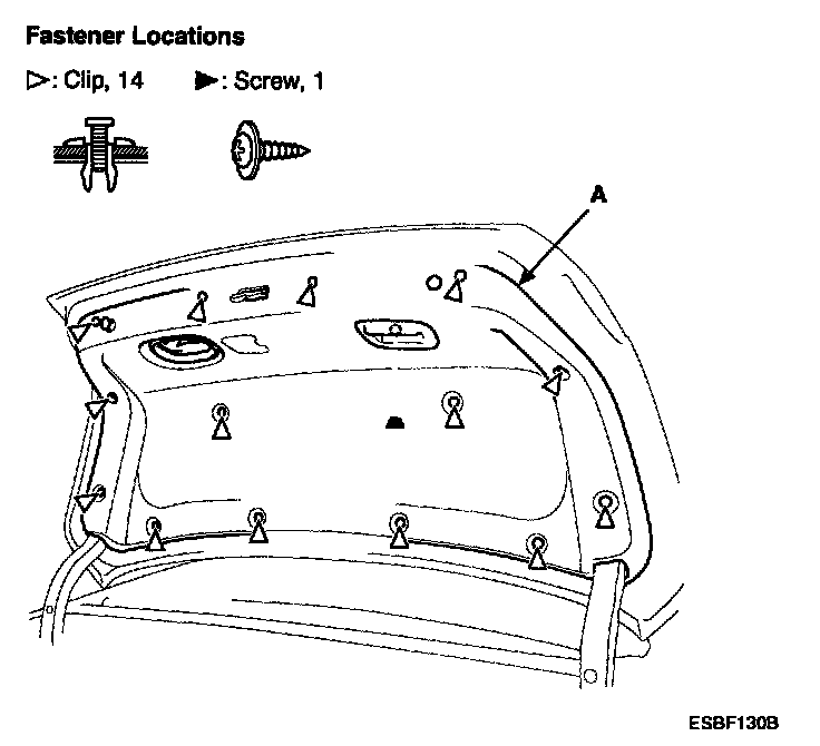TRUNK LID TRIM REPLACEMENT1. Detach the clips, then remove the trunk trim (A).