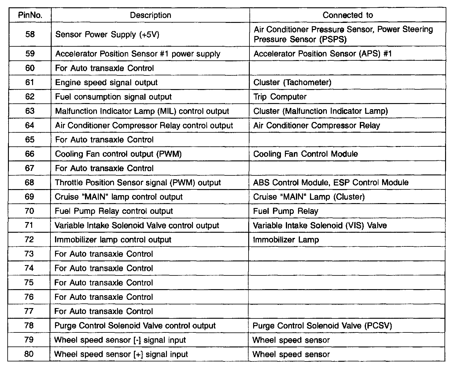 PCM Terminal Function - Connector [C144-A] Part 2: