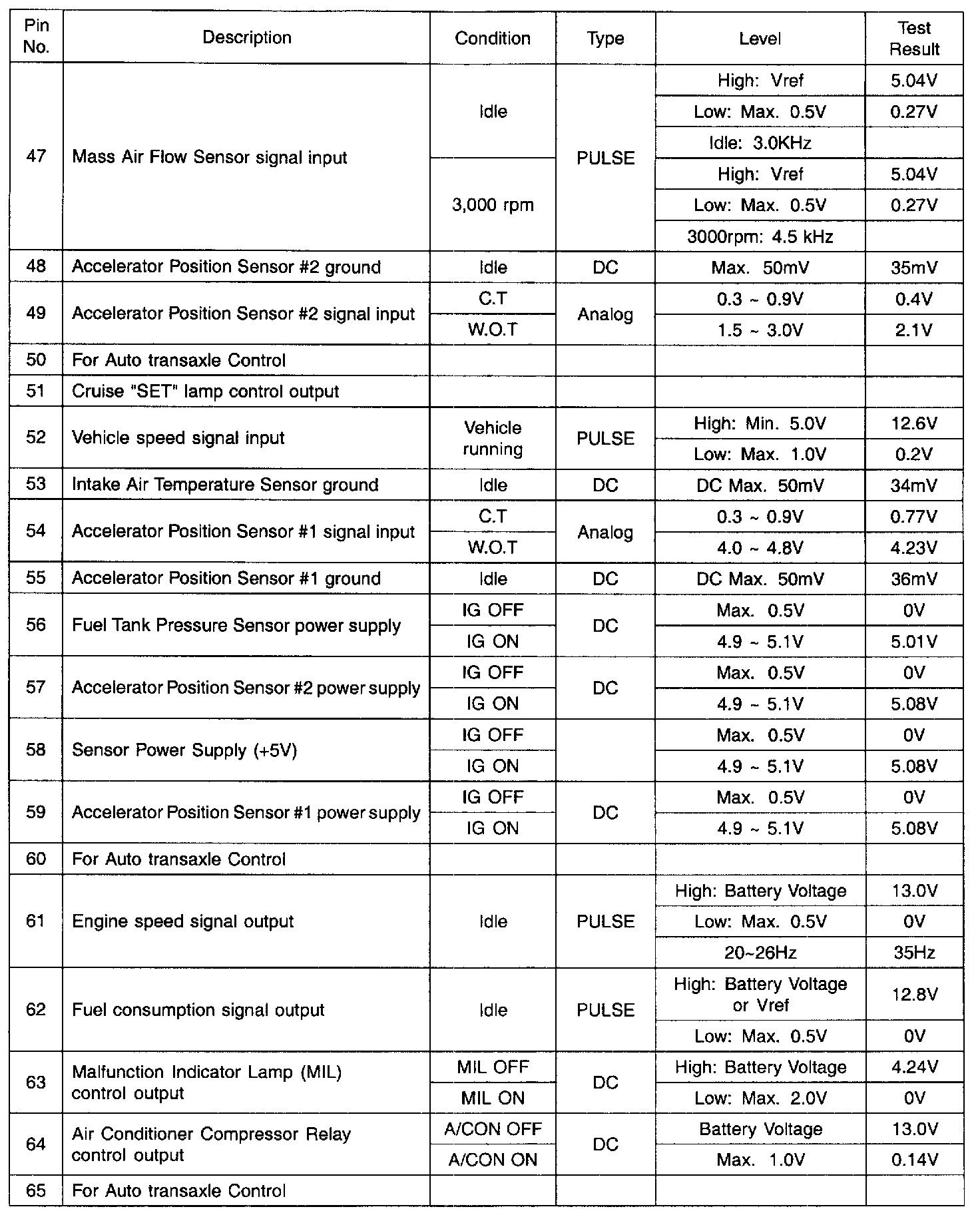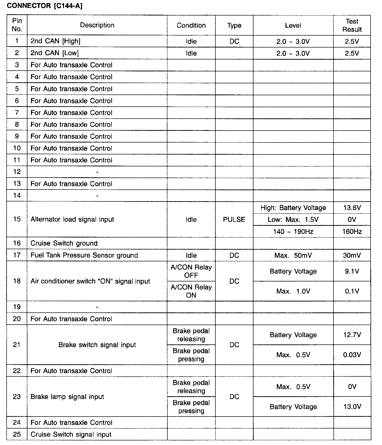 PCM TERMINAL INPUT/OUTPUT SIGNAL - CONNECTOR [C144-A]