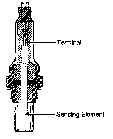 Heated Oxygen Sensor (HO2S) consists of zirconium and alumina and is installed on upstream and downstream of the Manifold Catalyst Converter (MCC). After it compares oxygen consistency of the atmosphere with the exhaust gas, it transfers the oxygen consistency of the exhaust gas to the PCM. When A/F ratio is rich or lean, it generates approximately 1 V or 0 V respectively. In order that this sensor normally operates, the temperature of the sensor tip is higher than 370 °C (698 °F). So it has a heater which is controlled by the PCM duty signal. When the exhaust gas temperature is lower than the specified value, the heater warms the sensor tip.