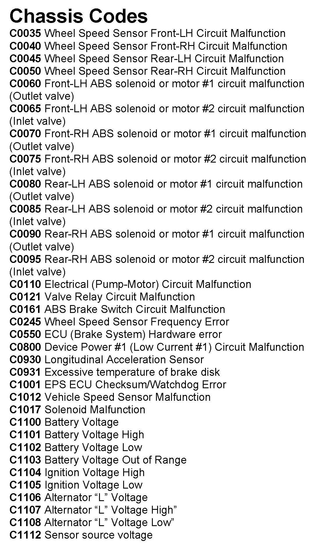 Chassis Codes