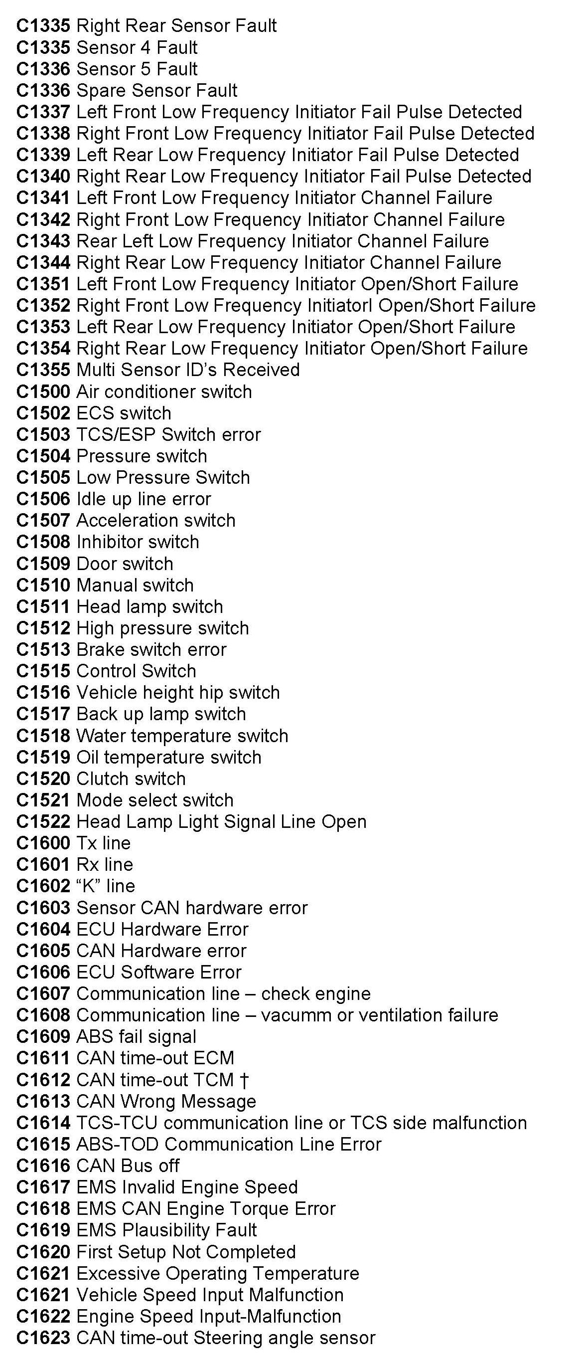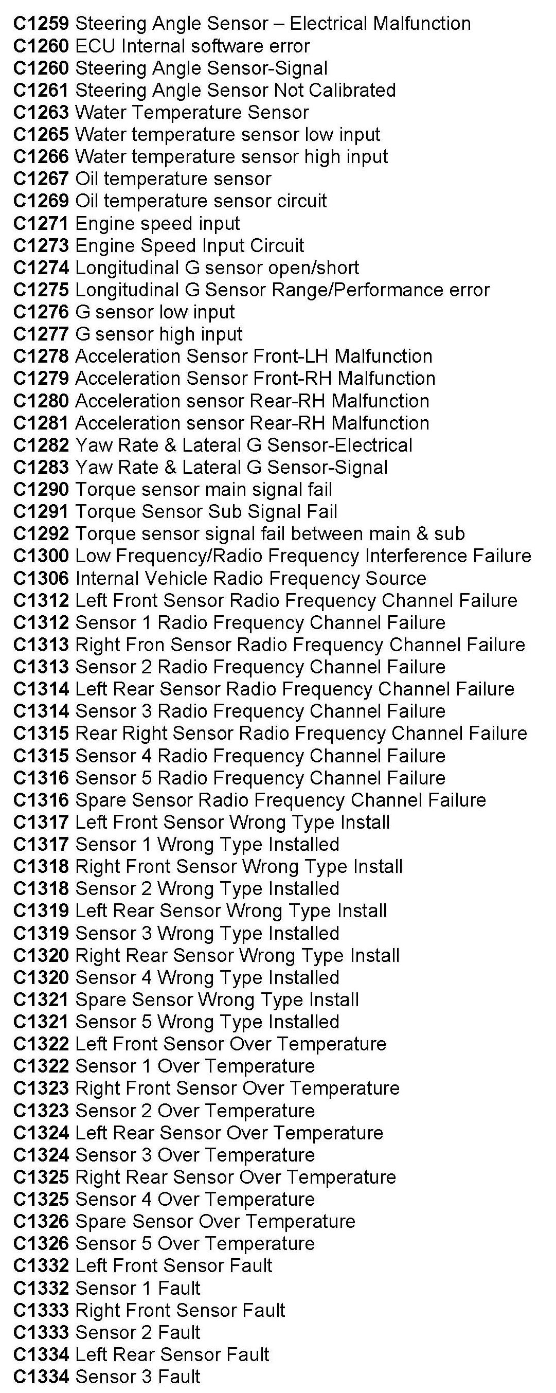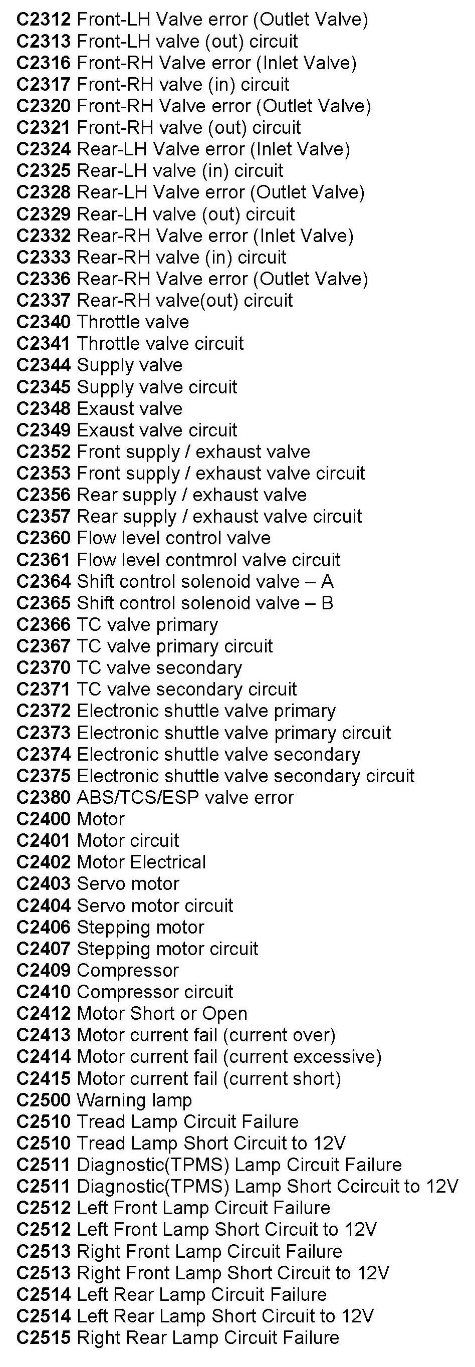 Computers/Controls - OBD-II Trouble Code Table