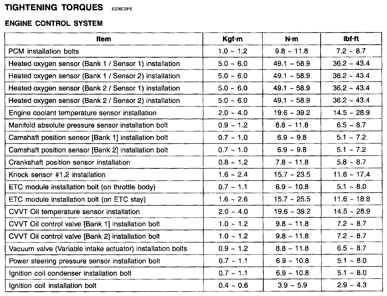 Fuel Delivery and Air Induction: Specifications