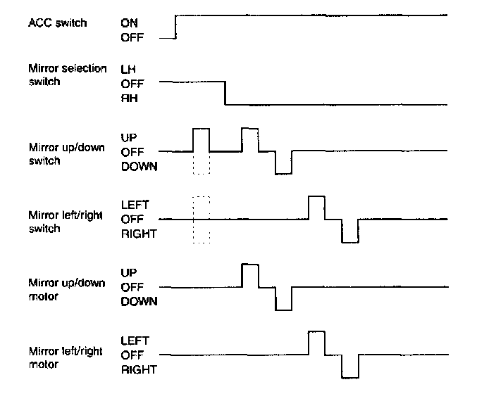 2. Mirror drive signal cannot be outputted for more than 15 seconds in one direction. (In case of memory replay or manual switch operation)