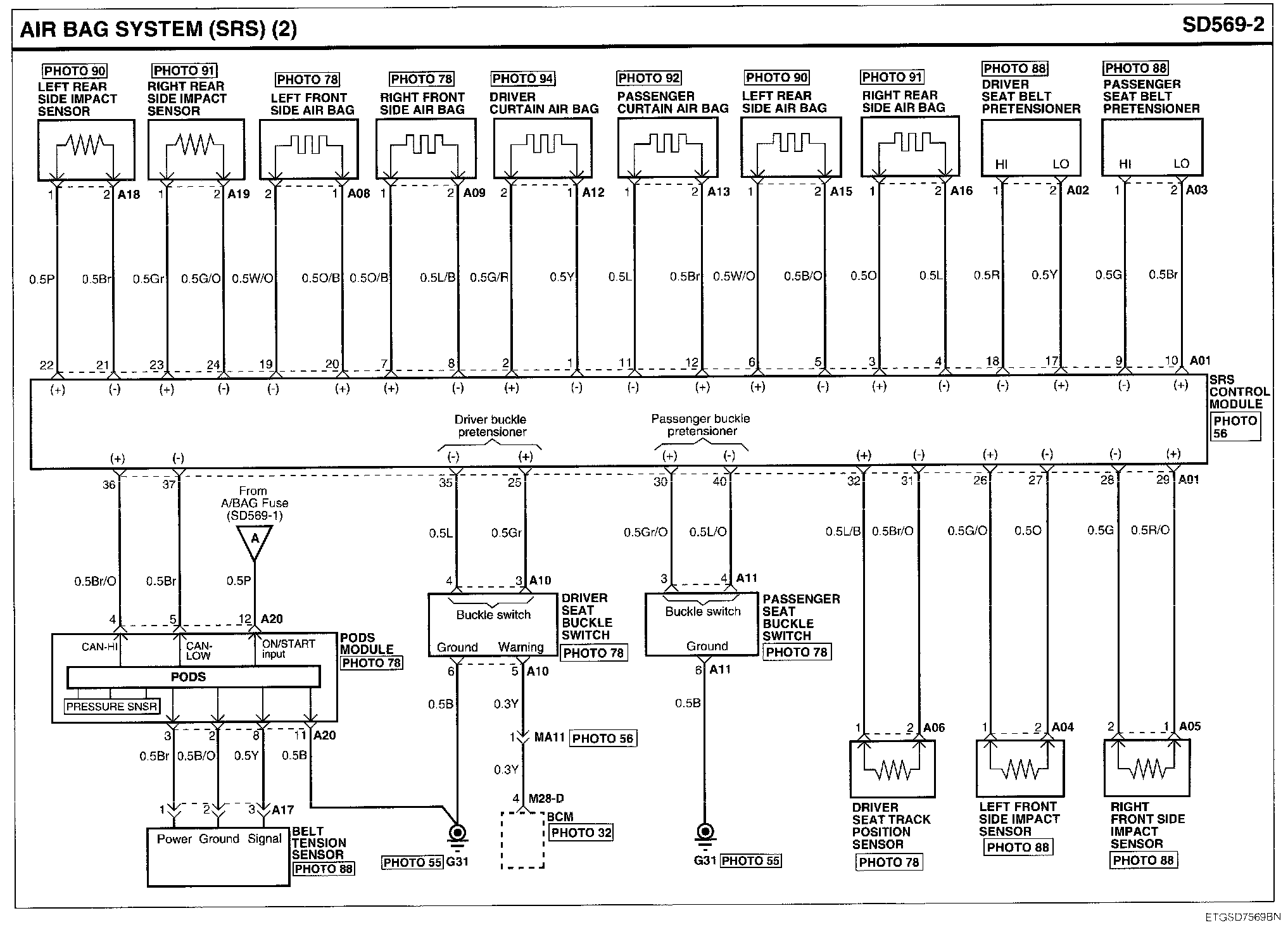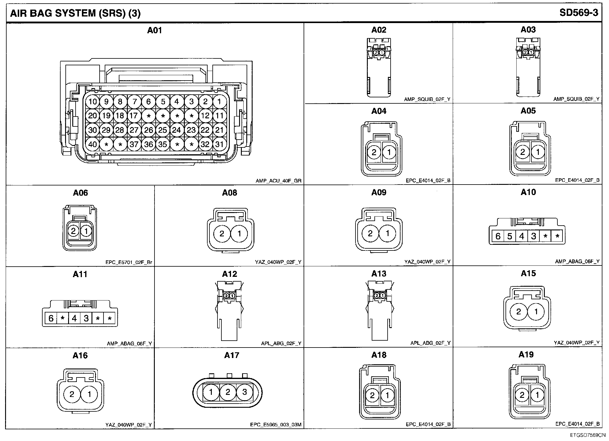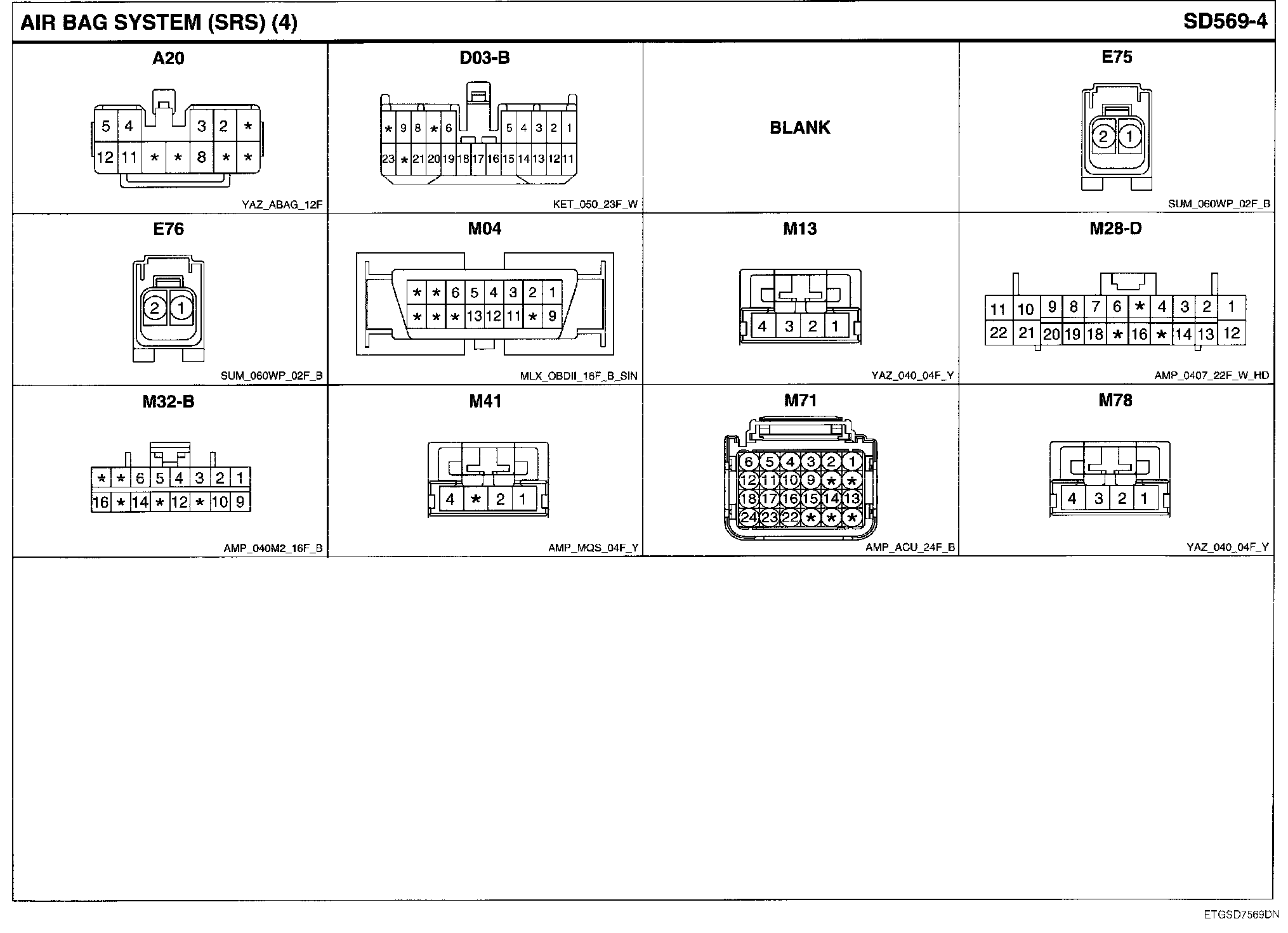 Air Bag System (SRS) Connector Pin Outs: