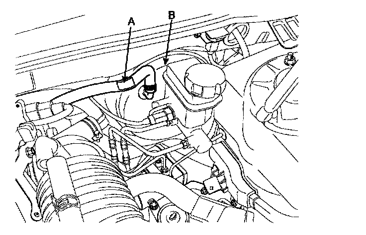 1. Disconnect the brake booster vacuum hose (check valve built in) (A) at the booster.