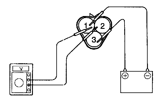4. Check that there is voltage change from approx. 0 V to 11 V or more between terminals 3 and 1.