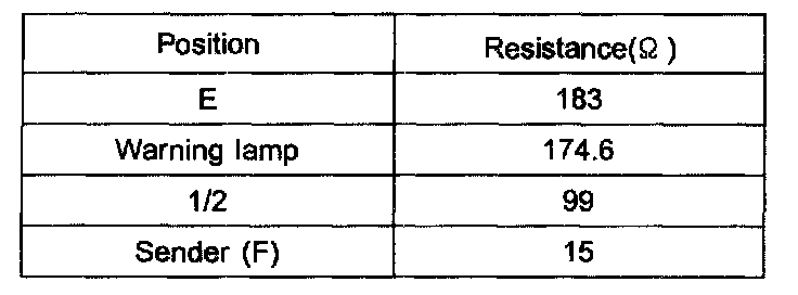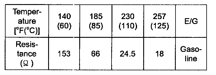 2. If the resistance value is not as shown in the table, replace the temperature sender.
