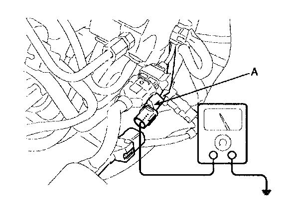 1. Disconnect the wiring connector (A) from the engine coolant temperature sender in the engine compartment.