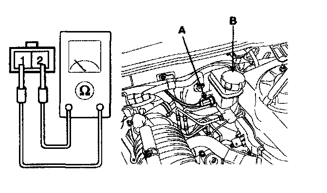 1. Remove the connector (A) from the switch located at the brake fluid reservoir. (B).