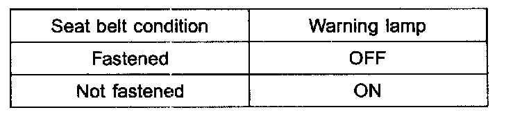 2. Turn the ignition switch ON. Check that the warning lamp lights up. If the warning lamp doesn't light, test the bulb or inspect the wire harness.
