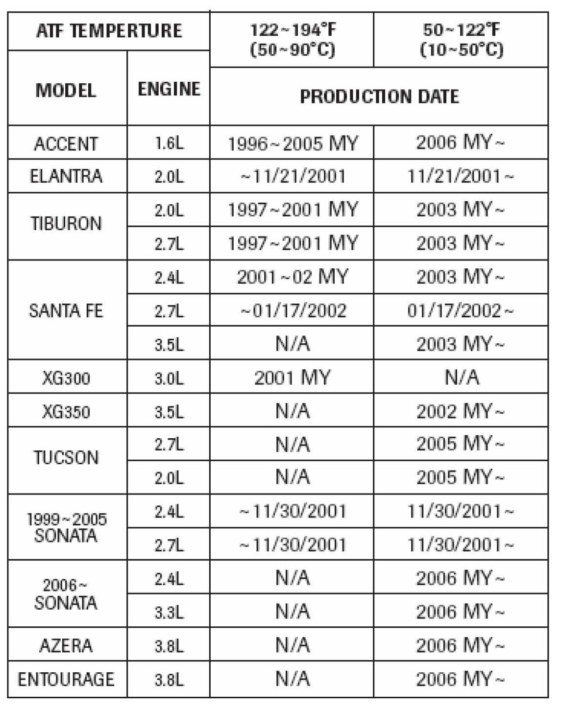 Adaptive learning does not occur below the ATF temperature range shown in next column: